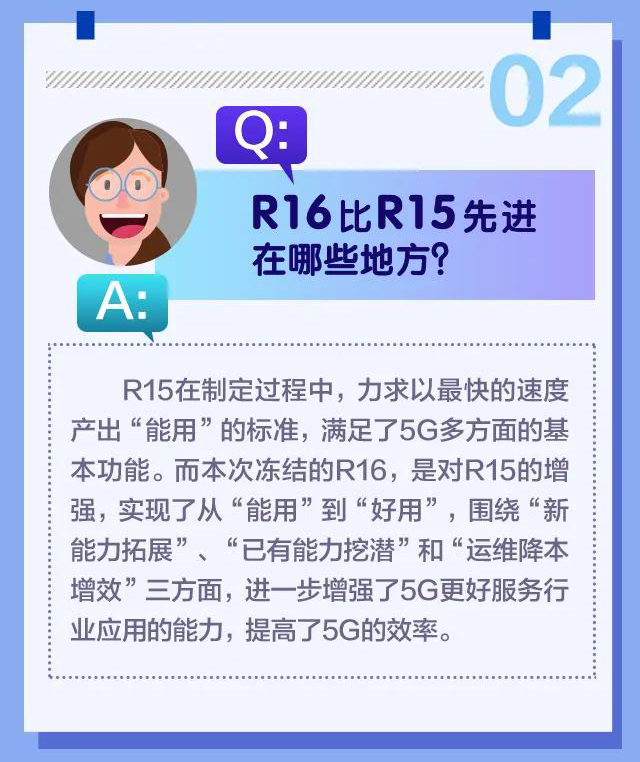 据了解,3GPP是国际通信标准组织,全球5G技术的标准制定也有赖于该组织。该组织主要由3个技术规范组(TSG)组成,分别是无线接入网(RAN)、业务与系统(SA)和核心网与终端(CT)。2018年,3GPP已经冻结了5G第一版R15。而本次冻结的R16,实现了从“能用”到“好用”,围绕“新能力拓展”、“已有能力挖潜”和“运维降本增效”三方面,进一步增强了5G更好服务行业应用的能力,提高了5G的效率。R15的若干基础功能在R16中得到持续增强,比如,显著提升小区边缘频谱效率、切换性能,使终端更节电等。