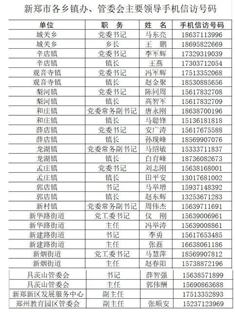 为进一步畅通信访渠道,解决群众合理合法诉求,近日,新郑市人民政府在其官网发布了《关于公布新郑市委书记、市长、信访局长及相关单位主要领导手机信访号码接收群众短信诉求的通告》。