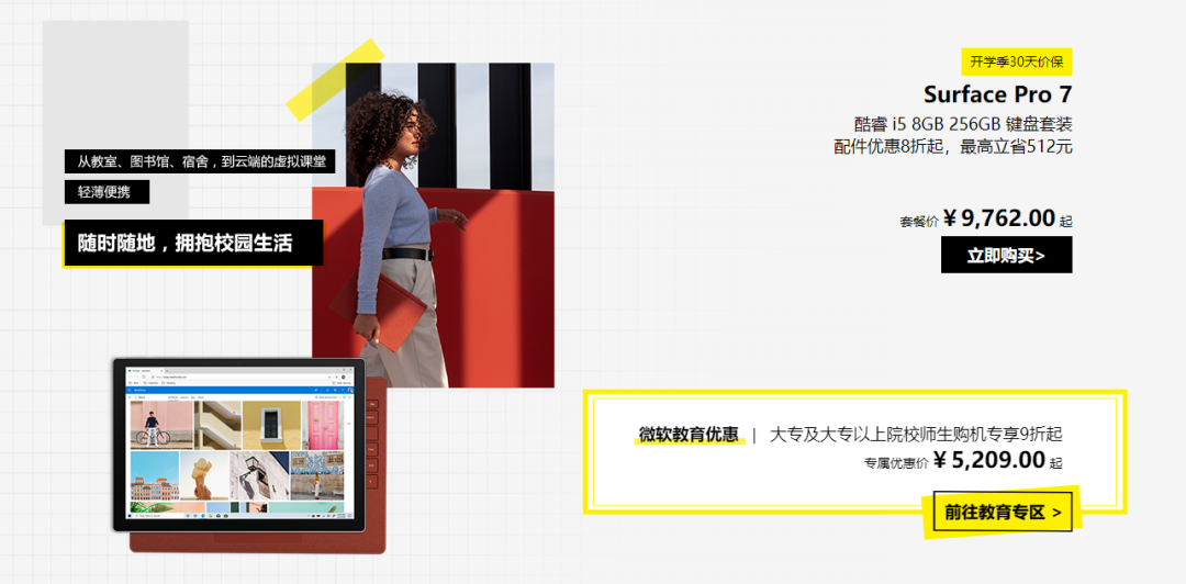目前在微软官网同样推出了教育优惠的活动,电脑、平板以及配件产品都有不同程度的优惠,感兴趣的同学也可以去官网了解一下。