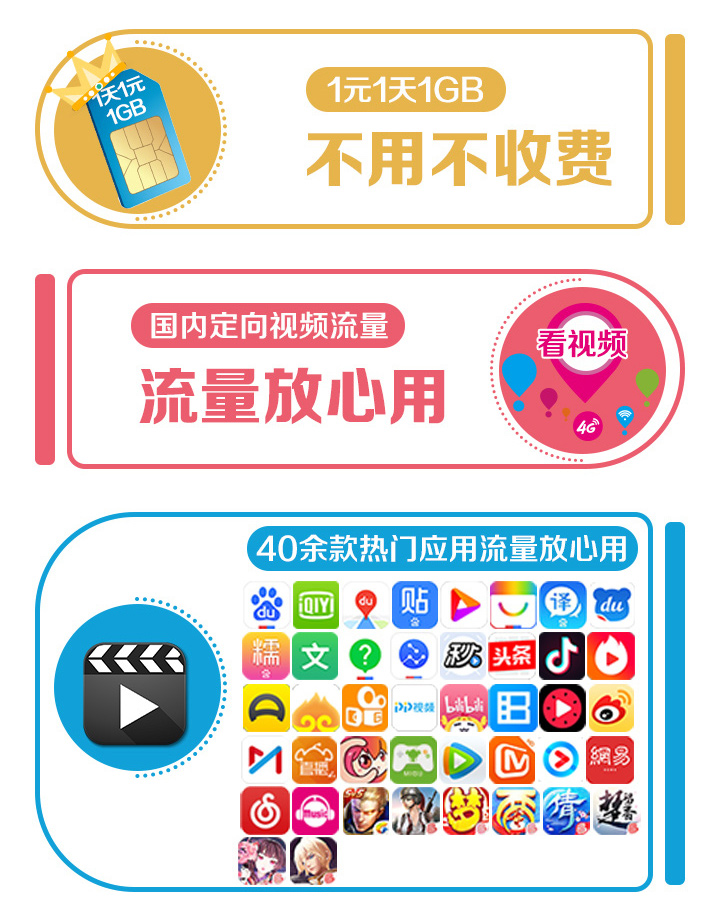 2、29元王卡,标准资费49元/月,按天按量计费,包含80分钟国内通话、2G国内流量和30G全国视频定向流量;超过套餐包含通话时长后:直接拨打国内电话0.19元/分钟;国内流量按照1元/1G计费,当日有效,自动续订,不用不收费。