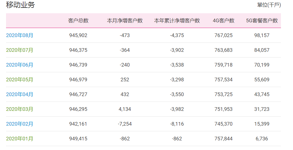 近天,中国移动今日公布2020年8月份运营数据,其老用户锐减数量依然没有放缓。