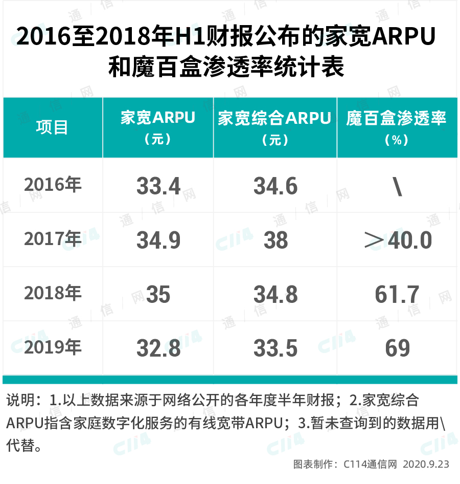 中国移动的宽带收入从2017年的341亿元增长到2018年的461亿元,再到2019年的688亿元,规模成功超越中国电信。虽然宽带用户ARPU值低,但是依靠庞大的用户群,中国移动照样实现了收入规模第一的目标。