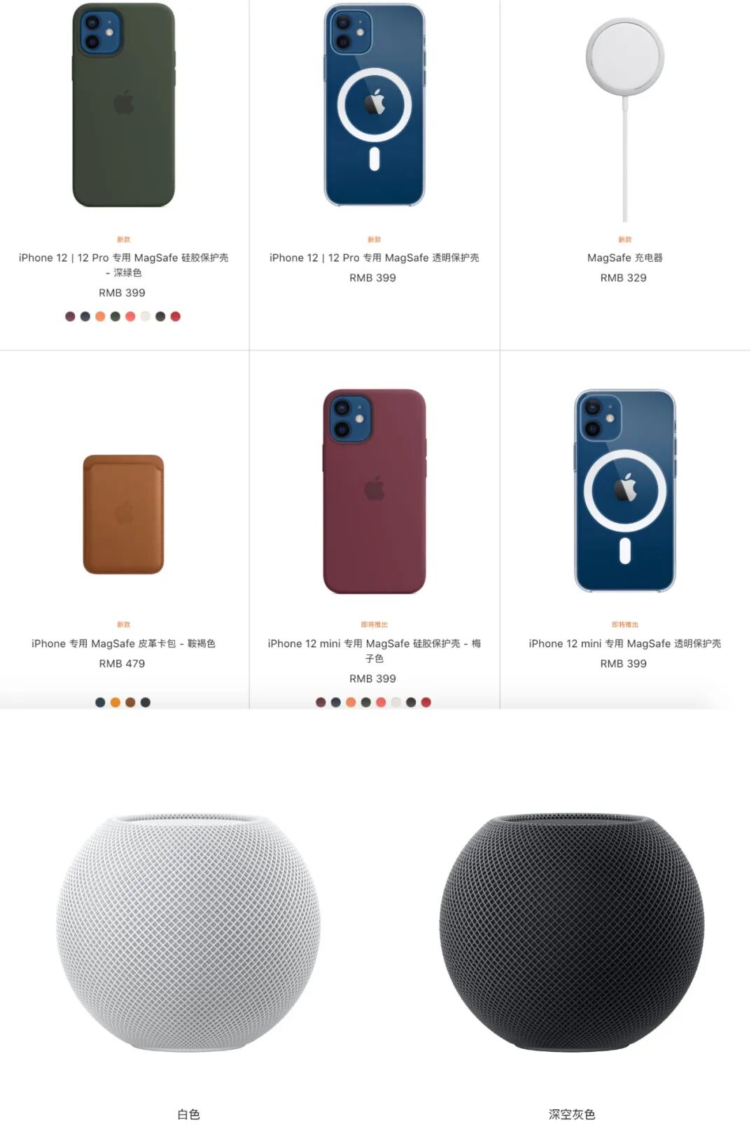除了新 iPhone,苹果还发布了 HomePod mini,售价 749 元。官网还上架了诸多带有磁性的 MagSafe 配件。