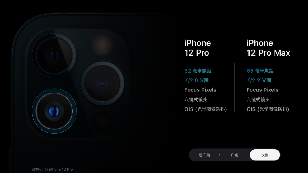 12 Pro Max 长焦摄像头的光圈小于 12 Pro,分别为 ƒ/2.2 和 ƒ/2.0。