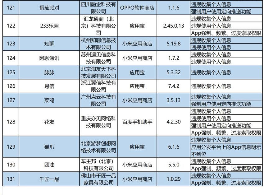 通报称,工业和信息化部近期组织第三方检测机构对手机应用软件进行检查,督促存在问题的企业进行整改。截至目前,尚有131款APP未完成整改,上述APP应在11月2日前完成整改落实工作。