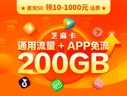 芝麻卡支持选择3个App定向免流量。其中,19元/月芝麻卡可选1次视频会员,39元/月芝麻卡可选3次视频会员。可选App包括爱奇艺、优酷、喜马拉雅、网易云音乐、腾讯视频、快手、哔哩哔哩等。