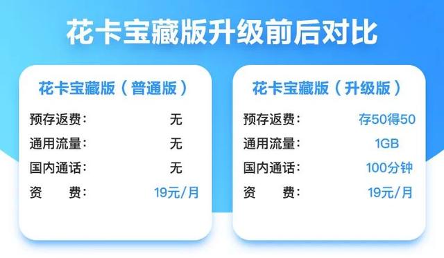 与此同时,西藏移动官方公众号发布一条推文,主题为“花卡宝藏版升级啦!价格不变,权益更多!”,从文章配图可以看出,升级后的移动花卡宝藏版月租费同老版一样,还是19元,并但是增加一1G通用流量和100分钟时长的语音通话,另外,有首开存50返50的优惠活动。真的是没有套路的满满福利!
